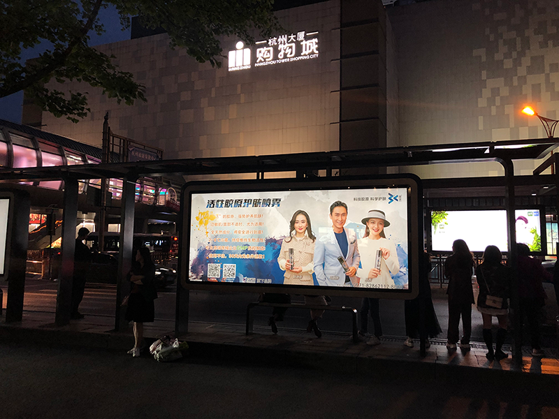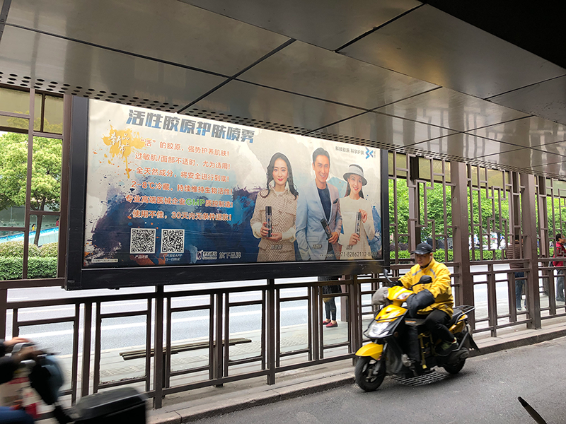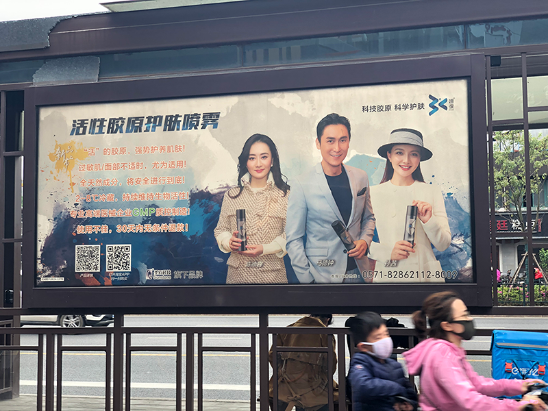 2019春夏之交,圣石科技旗下科學護膚品牌姍渡活性膠原護膚噴霧產品線下廣告在杭城各大公交站點陸續啟動。