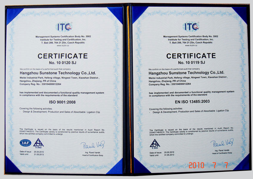 上述證書的獲得,標致著我公司產品將順利進入全球市場,參與國際競爭。同時也使我公司產品在日后國內醫療機構醫用耗材政府招標采購活動中獲益良多。