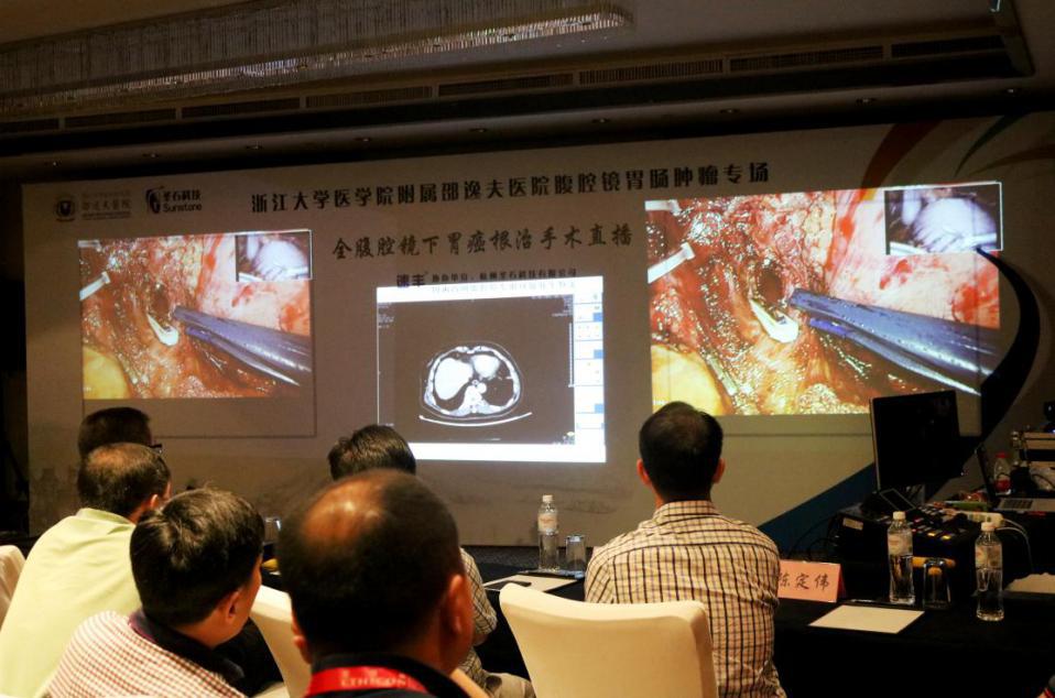 會議期間,我公司通力協作浙江大學醫學院附屬邵逸夫醫院舉行腹腔鏡胃腸腫瘤專場會議腹腔鏡下胃癌根治手術直播,來自全國的業界同道在此面對面交流臨床經驗,共同分享新理論、新知識、新技術、新方法,直播現場一席難求,氣氛熱烈。