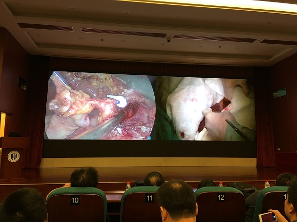 11日下午,大會安排了數場手術視頻演示及分享技術交流,其中腹腔鏡肝切除VII、VIII段切除術及腹腔鏡左、右半肝切除術等其他手術演示視頻中多次用到我公司產品速豐?。