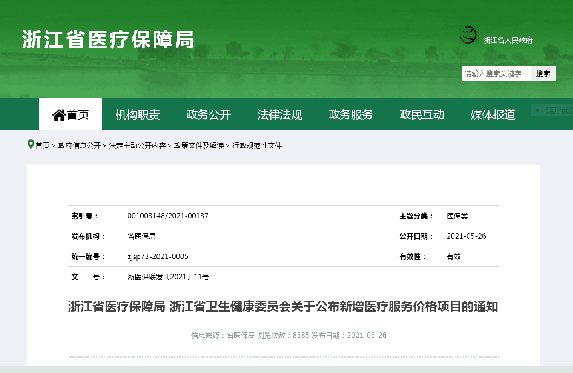 浙江省醫療保障局、浙江省衛生健康委員會于5月26日發布了關于公布新增醫療服務價格項目的通知。根據醫療服務...