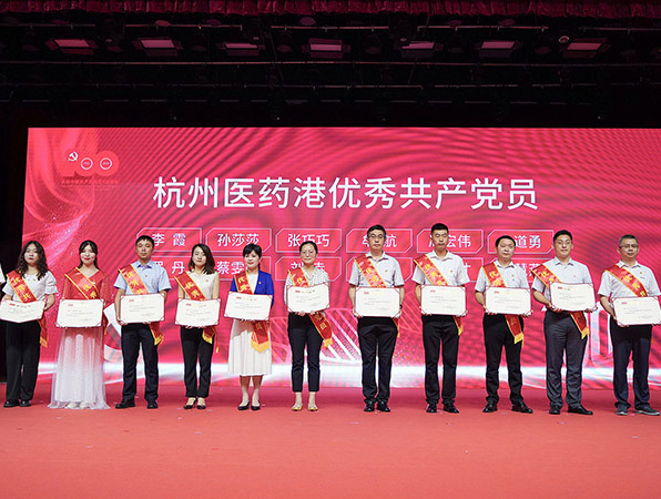 為紀念中國共產黨成立100周年,杭州醫藥港黨工委于2021年6月30日上午9:30在醫藥港小鎮隆重舉行“醫心向黨,黨...